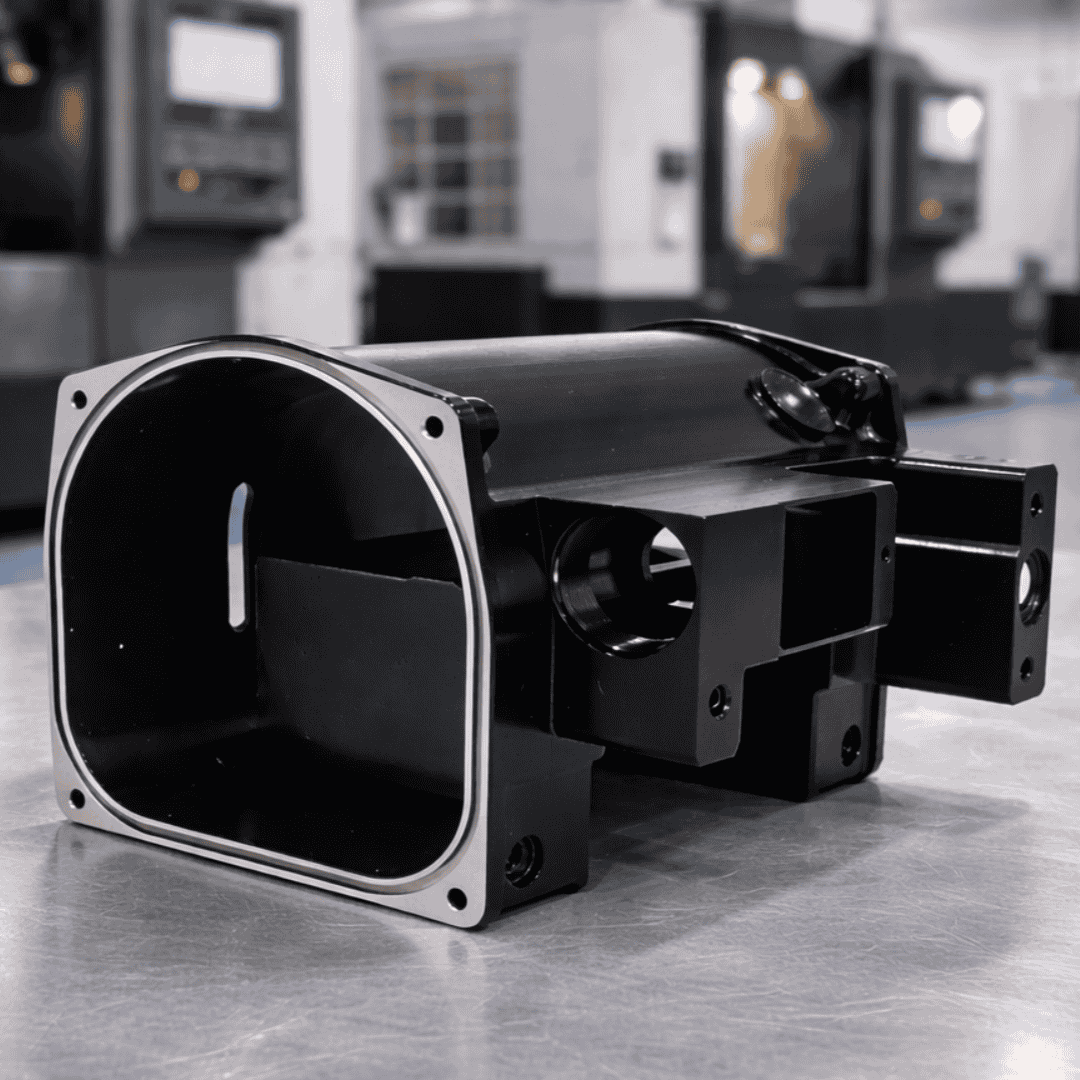 Geometrically complex aluminium CNC milled components like casings we produce using 4- and 5-axis CNC machine tools.